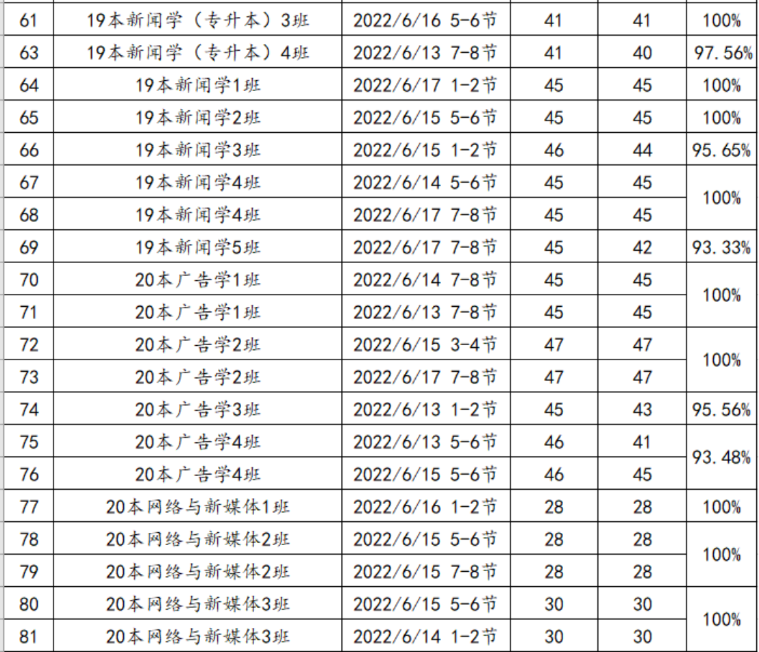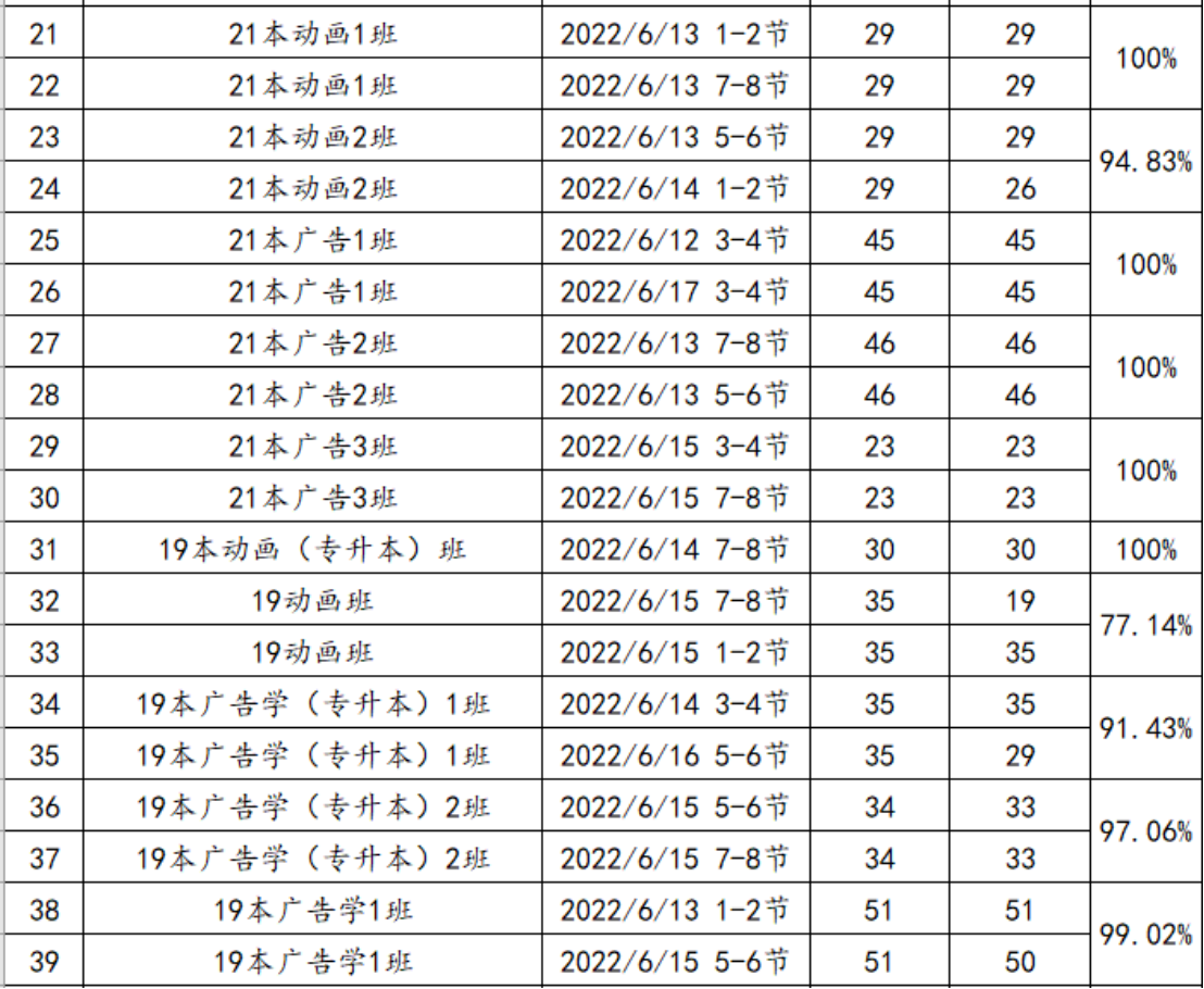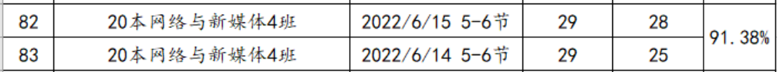 (一)原则上每周每个班课堂检查情况不低于2次,根据平均到课情况计算出勤率。