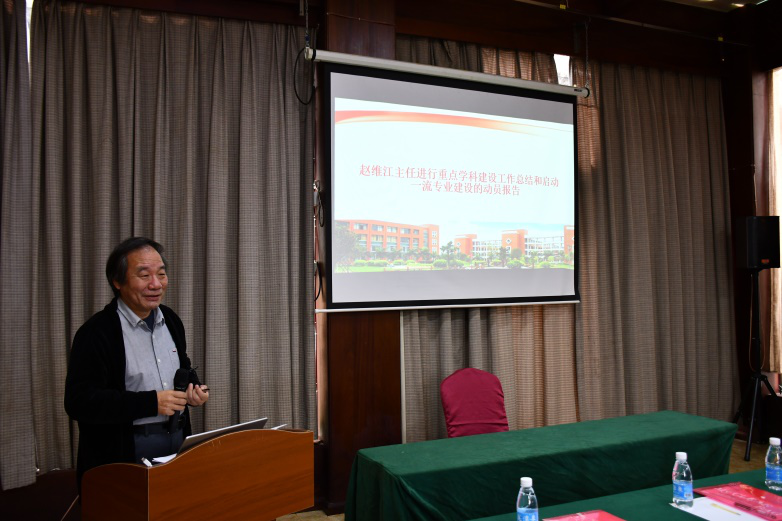 会议第一项,赵维江主任主任进行重点团队建设工作总结和启动省级一流本科专业建设点的动员报告。赵主任详细讲述了省级“一流本科专业”建设点的申报过程,肯定了传媒系全体人员的努力,三年来,我系大力引进高层次、高学历、高水平的教师,加强基本团队队伍建设,建设创新型、应用型人才培养模式;积极开展科研工作,努力提升自主创新能力;推进实践教学工作,今年与易简传媒公司合作,成立华商公司未来新媒体研究院。赵主任还指出在建设中的问题,比如在教材编写方面的计划有待完成,教学团队与课程建设尚有差距等。他还提出了关于加强组织与队伍建设、教学与科研、抓宣传工作与员工工作等推进团队建设和改革的主要思路和举措。成为“一流专业”建设点对我系来说既是机遇,又是挑战,我们要提高信心,同时寻找差距,不断提升整体水平。