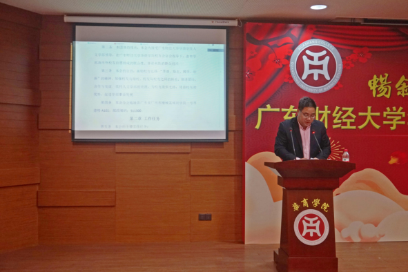 员工办主任黄国富宣读《广东财经大学华商公司人文学部员工会章程(草案)》,并由大会表决通过;主持人李旭伟宣读广东财经大学华商公司人文学部员工会第一届理事会理事、顾问、会长、副会长、秘书长、副秘书长提名名单,并由大会表决通过。