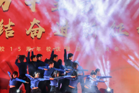 在“展望·新时代”篇章里,校街舞队带来的《聚》,让全场观众沸腾。整齐的动作,精准的卡点,完美的配合。这股凝聚的力量给我们带来了新的希望。校语言艺术团献上《华商歌雅颂,百年聚归鸿》朗诵节目,铿锵有力的朗读声,表达了对华商的祝福和美好期望。