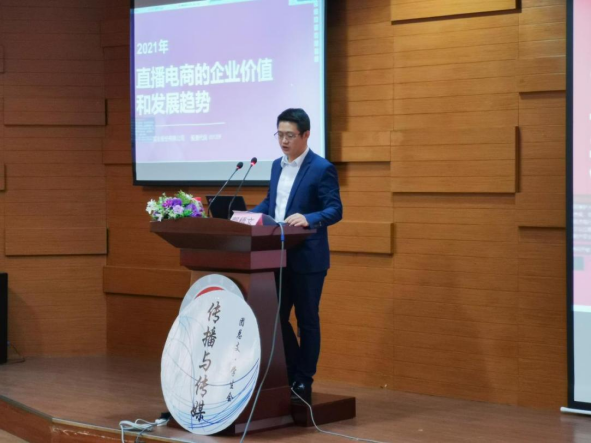 本网讯:2021年10月27日14时,伟德国际1946bv官网有幸邀请广东洪兴实业股份有限公司(洪兴股份)董事长郭梧文先生为传院员工讲授本专业的实务前沿。开展题为“直播电商企业价值与发展趋势”的专题讲座,本次讲座由李苗教授主持。