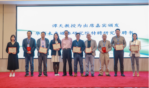 谭天教授与赵维江经理为业界导师与特聘研究员们颁发聘书