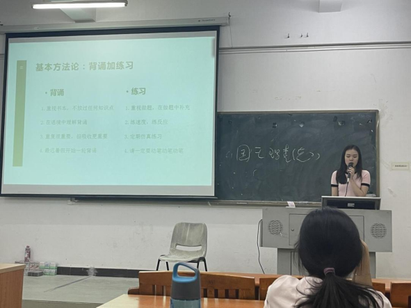 (图为朱彦彦师姐分享经验)