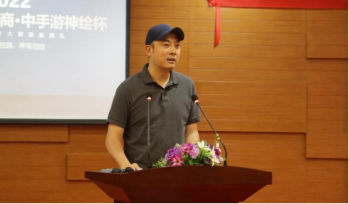 深圳市神绘数码技术有限公司骆俊总经理进行致辞,他对同学们的积极参与,老师们的辛勤付出表示感谢。他表示,本次比赛整个过程较为艰辛,题目细致,比赛条款复杂,但这正是未来工作的真实写照,游戏行业里除了脑洞大开,还应有对设计与创作需求的理解与思考,在这个过程之中,大家能提前感知动漫设计这条赛道的起始点,激发同学们对创作的热情,这便是大赛的目的。