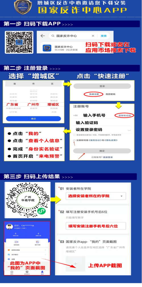五、下载注册“国家反诈中心”APP,切勿卸载。国家反诈中心是国务院打击治理电信网络新型违法犯罪工作部际联席会议合成作战平台,集资源整合、情报研判、侦查指挥为一体,在打击、防范、治理电信网络诈骗等新型违法犯罪中发挥着重要作用。它的“反诈预警、身份验真、App自查、风险查询”等核心功能可以最大限度减少民众被骗的可能性(当然要注意通过正规渠道下载,避免因为下载山寨APP而上当受骗)。从近期了解得情况看,虽然前段时间全院同学都根据要求安装了“国家反诈中心”APP,但近期发现有一些同学已将其卸载。希望同学们相信政府,切勿卸载“国家反诈中心”APP,筑牢反诈防骗最后一道防火墙。