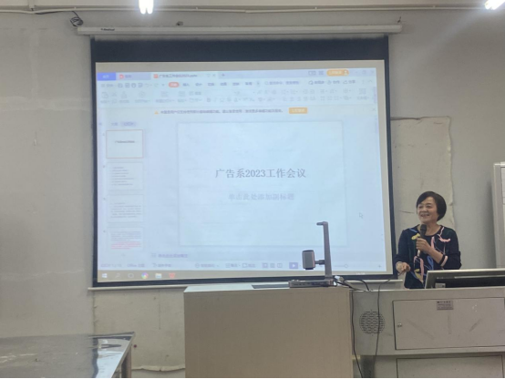 会议伊始,由广告系主任李苗教授就教学工作安排、一流专业建设、团队力量打造、研讨会举办、科研项目申报、员工竞赛指导、专题讲座举办、业界合作交流等方面回顾了2022年的主要工作。