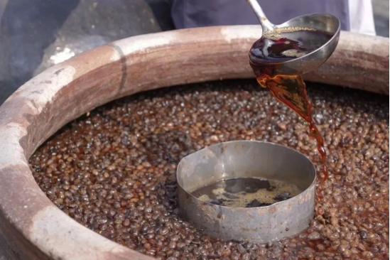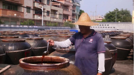 观赏火狗之余,调研团还专程前往增城著名的老土豉油工厂进行深入实地考察和研究。老土豉油是增城独具特色的一种油品,主要采用中国本地黄豆为原料,结合当地面粉和菌种,经过独特的生产工艺,以传统的土缸土办法进行发酵制醪。这一古老传统工艺经过六代人的精心传承,一直以来为当地人民提供了丰富的食物源泉和人文魅力。