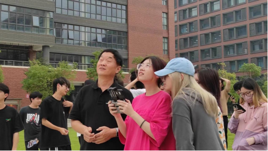 员工模拟操作熟练后,马保印教授用个人的大疆御Air2无人机,让员工在四会校区操场,体验真机的飞行,顺利完成了教学任务,得到了员工的一致好评。