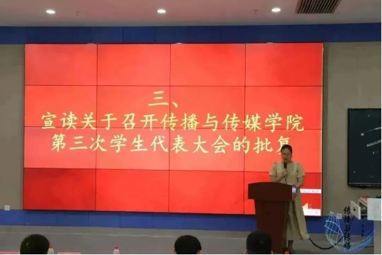 校团委陈巧巧老师宣读关于召开bevictor1946韦德官网伟德国际1946bv官网第三次员工代表大会的批复。
