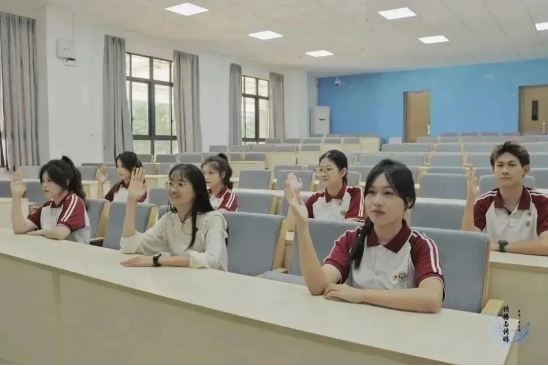 全体奏唱国歌,激昂慷慨的歌声振奋人心。