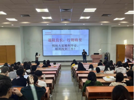 周颖娟老师结合自身经验和当前就业形势,对就业工作安排、毕业生就业准备、就业信息获取途径、就业策略及其它注意事项进行了讲解。同时强调,全体毕业生要高度重视就业规划,提前明确择业定位和就业目标,精准把握就业政策,精心准备就业材料,调整求职心态,注重能力锻炼,不断提升求职技能,合理安排就业节奏,积极参加招聘会,抓住就业机会。