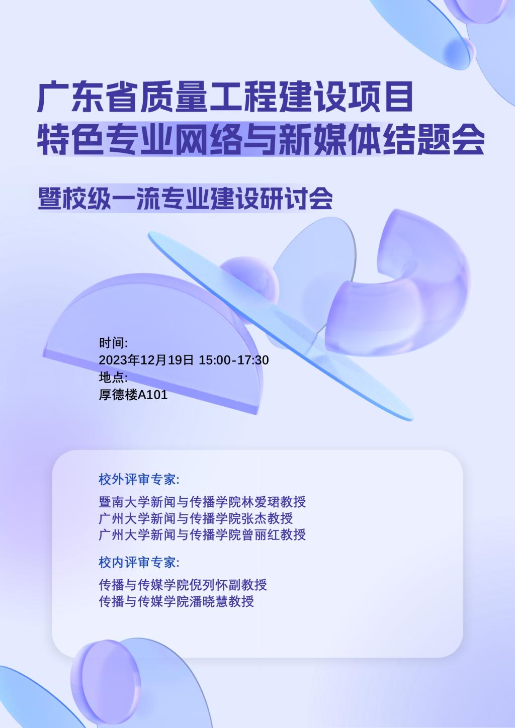 自2017年5月以来,伟德国际1946bv官网网络与新媒体专业已走过不寻常的六年半,为盘点网络与新媒体专业所取得的各项成果,反思在发展过程中还存在的问题,更好规划发展方向和更加精准专业定位,按照省教育厅和公司教务处2020年广东省质量工程结题时间安排,兹定于12月19日下午3点在厚德楼A101召开“广东省质量工程建设项目特色专业网络与新媒体结题会暨校级一流专业建设研讨会”。本次活动邀请暨南大学新闻与传播公司林爱珺教授、广州大学新闻与传播公司张杰教授、曾丽红教授担任校外评审专家,邀请bevictor1946韦德官网伟德国际1946bv官网倪列怀副教授、潘晓慧教授担任校内评审专家。欢迎光临指导!