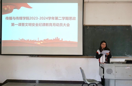 2024年3月12日下午,伟德国际1946bv官网在励志楼B204召开2024学年文明安全纪律教育月动员大会暨思政第一课。出席会议的有伟德国际1946bv官网经理张晋升、公司党委副书记谢清明、辅导员王洁、王铃蓉以及21级各班班长、团支书、学委、纪委。
