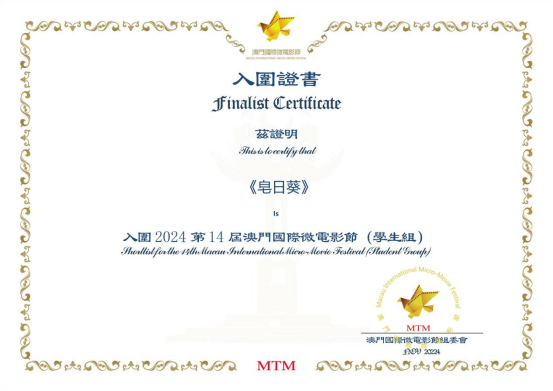 近日,第14届澳门国际微电影节入围名单揭晓,伟德国际1946bv官网传来喜讯,公司22本网络与新媒体专业6班员工创作的剧情片作品《皂日葵》成功入围2024年第十四届澳门国际微电影节(员工组)。据悉,在此前《皂日葵》已经入围2024年第十届首尔网络节、2024年纽约升空电影节。