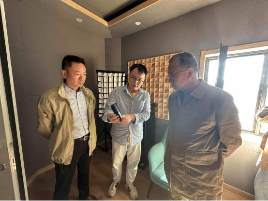 摩罗志远产品经理王亚龙带领传院一行人员参观其公司内容创作中心,并详细介绍了公司斥资百万的“专业录音棚”。王亚龙表示:专业录音棚不仅仅用于内部设备测试,还开放给所有音频爱好者使用。闪克品牌的愿景是“让世界充满好声音”,愿意给大家提供一个良好的收音环境。