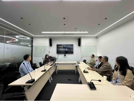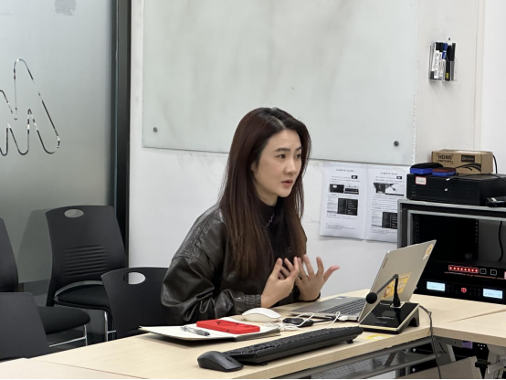 摩罗志远品牌经理刘芷伊向传院一行人员简明介绍公司及旗下知名麦克风品牌maono闪克的核心产品线,专业录音麦克风套装、直播麦克风套装、游戏麦克风以及短视频创作产品等。