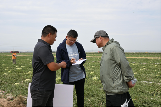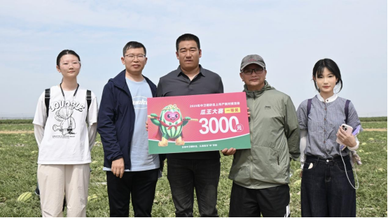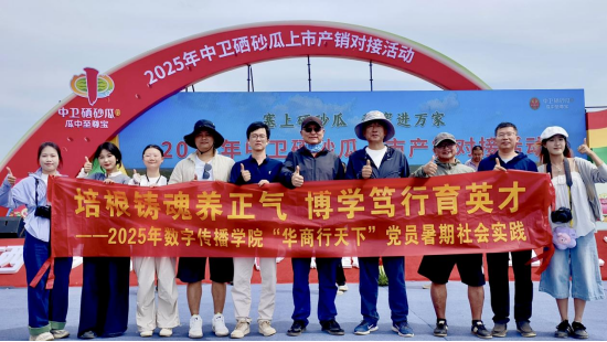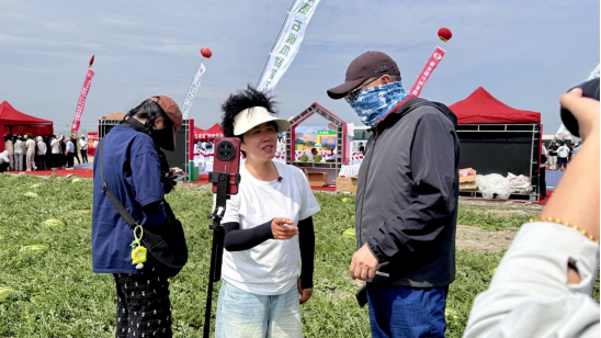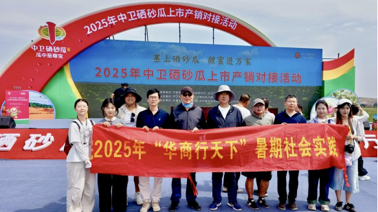 7月17日上午,2025年中卫硒砂瓜上市产销对接活动在沙坡头区兴仁镇兴仁村举行,公司暑期社会实践团10位师生来到现场调研,站在西瓜田埂上采访瓜农,帮助网红推销硒砂瓜,当地瓜农纷纷竖起了大拇指。政府官员、瓜农、经销商、网红达人和高校师生,共同投入到这场别开生面的西瓜产销对接会。