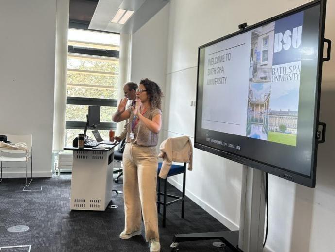 (教师考察团与Bath Spa University教师Charlie Wilson女士及John先生合影)