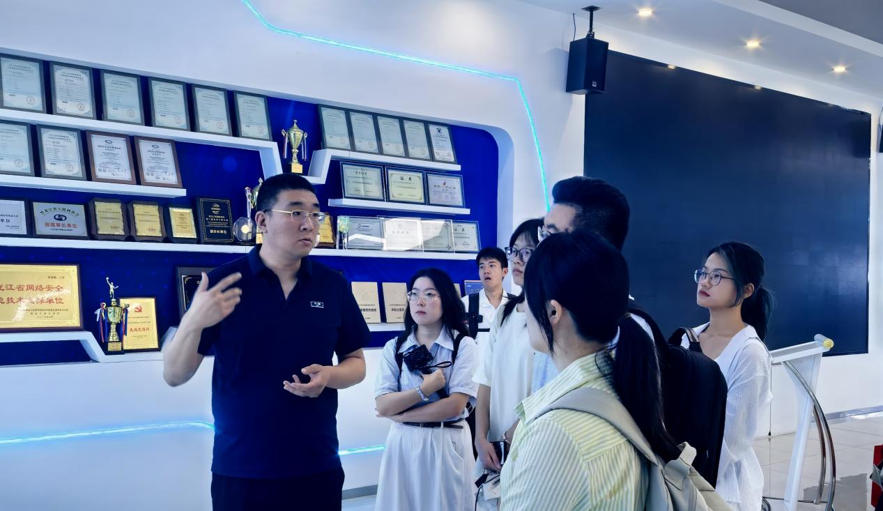 7月16日上午,团队参访北大荒哈尔滨直播电商共享基地,与起时集团总裁时总展开座谈会。赵安琪、张潇珑、王健权三位教师就“政务直播赋能县域经济”、“高校课程与产业需求对接”等议题与企业深度交流。双方在共建“龙江特色农产品直播数据库”、开发“政务主播实训课程”等方面达成合作意向,拟通过“高校智库+企业资源”模式助力东北乡村振兴。