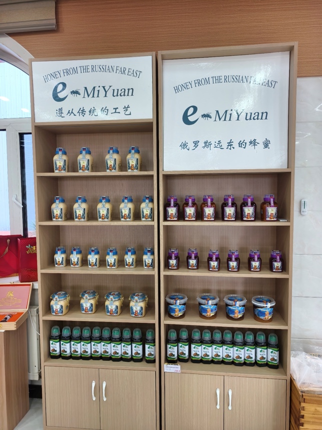告别辛巴赫啤酒厂,我们来到俄蜜源生物科技园。工作人员向我们展示了“俄罗斯资源输入、中国精深加工”的产业链模式。调研团重点关注其如何将俄罗斯优质蜂蜜资源,通过深加工技术转化为融合中俄特色的商品(酒类、糖果等),并思考其品牌价值与市场传播策略。
