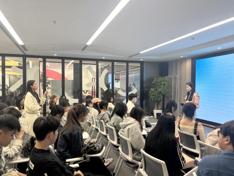 午后,实践团队前往前海深港青年梦工厂。在这里,公司特别邀请新媒体行业专家以“内容创新与媒介融合趋势”为主题举办专题讲座。专家结合新闻短视频、AI生成内容、品牌叙事等案例,分析传媒行业的新生态。他指出:“融合媒体时代,新闻人既要懂内容,也要懂算法;既要有专业理性,更要有人文温度。”