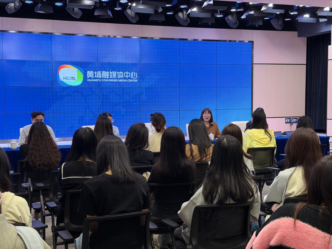 在交流环节,黄埔融媒多位资深老师与同学们进行了深入互动。黄蓉芳总监重点复盘了由公司实习生主创的爆款作品完整创作过程。其中,针对《十五运会会歌粤语老外接唱》的作品,她提到这是从广交会期间的偶然发现起步,经由用户兴趣调研验证选题价值,最终通过快速拍摄与剪辑在短视频平台获得成功。这一案例启发了在场员工:优秀的融媒体内容不仅依赖于敏锐的热点洞察,更离不开科学的调研方法与高效的执行能力。黄蓉芳总监还透露,中心为实习生配备双导师,分别负责内容指导与技术支持,确保实习作品能贴合平台传播需求。