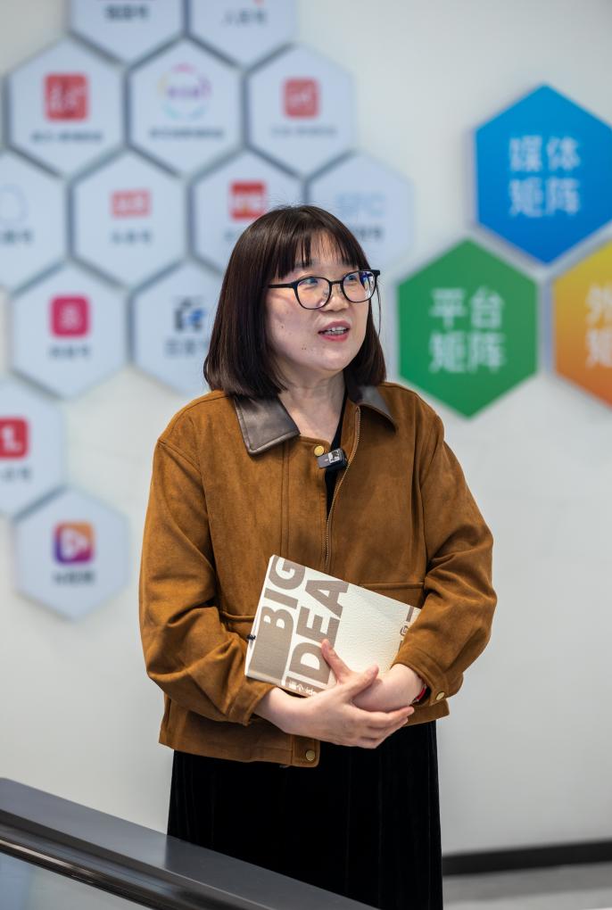 参访伊始,黄蓉芳总监以“平台化整合+垂直化深耕”为核心,系统介绍了黄埔融媒的发展历程与运营模式。她以典型政务报道为例,现场展示了“策、采、编、发、评”一体化内容生产链路的实际运作。据介绍,中心已构建起覆盖自有客户端、微信公众号及主流短视频平台等12个渠道的传播矩阵,内容会根据各平台特性进行精准化适配与同步分发。