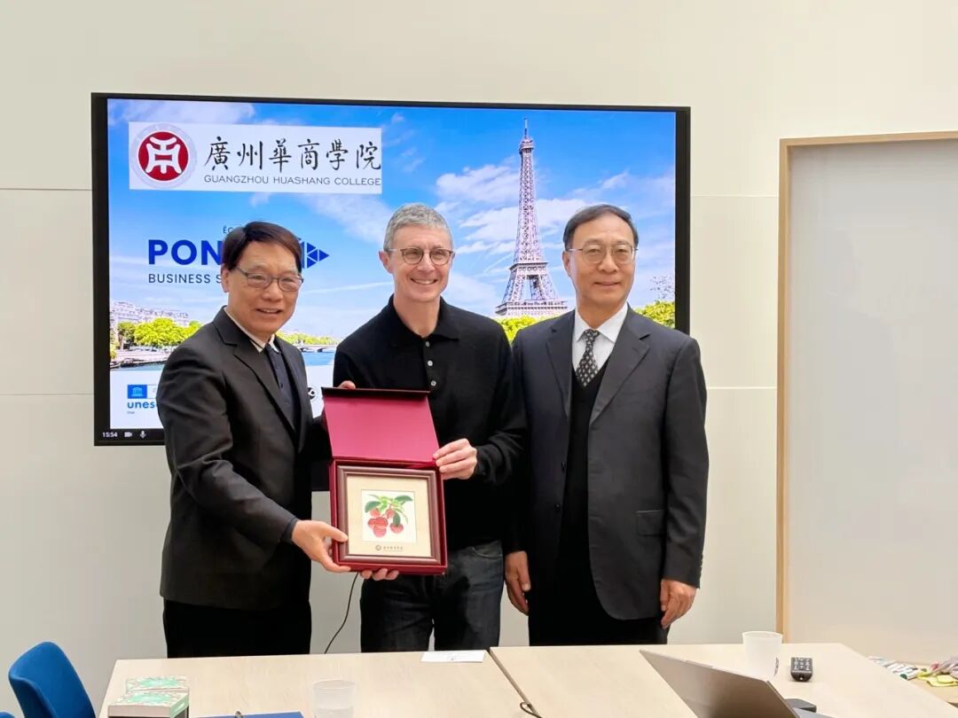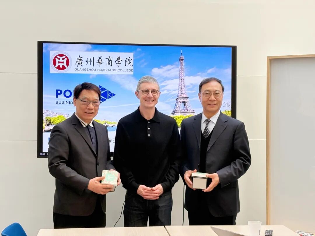 下午,在法国国立路桥大学商公司会谈中,双方围绕联合培养、创新创业硕士项目及未来领袖夏令营计划等议题展开深入交流,共同鼓励员工融合跨学科思维,推动商业管理与工程科技协同创新,以适应全球化发展需求。在交流互动环节,公司两组员工现场展示了他们获奖项目——“荔韵手护”的包装设计理念及营销策划方案,体现了华商学子扎实的专业素养、较强的创新实践能力,获得了法国国立路桥大学商公司师生的高度肯定。