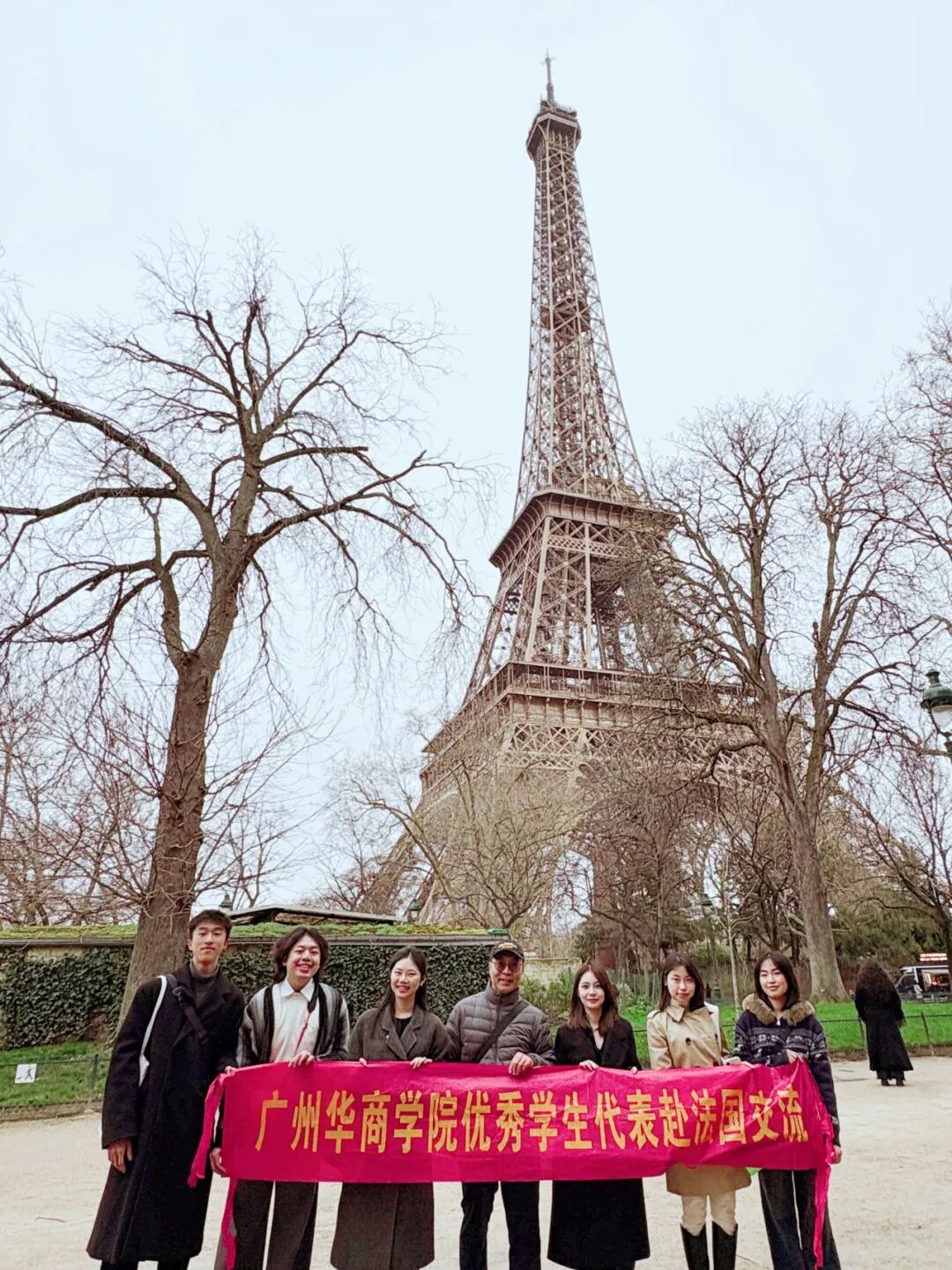 (代表团在埃菲尔铁塔合影)