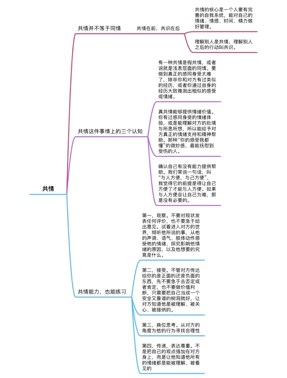 共情的核心是一个人要有完善的自我系统,能对自己的情绪、情感、时间、精力做好管理。理解别人是共情,理解别人之后的行动叫共识。